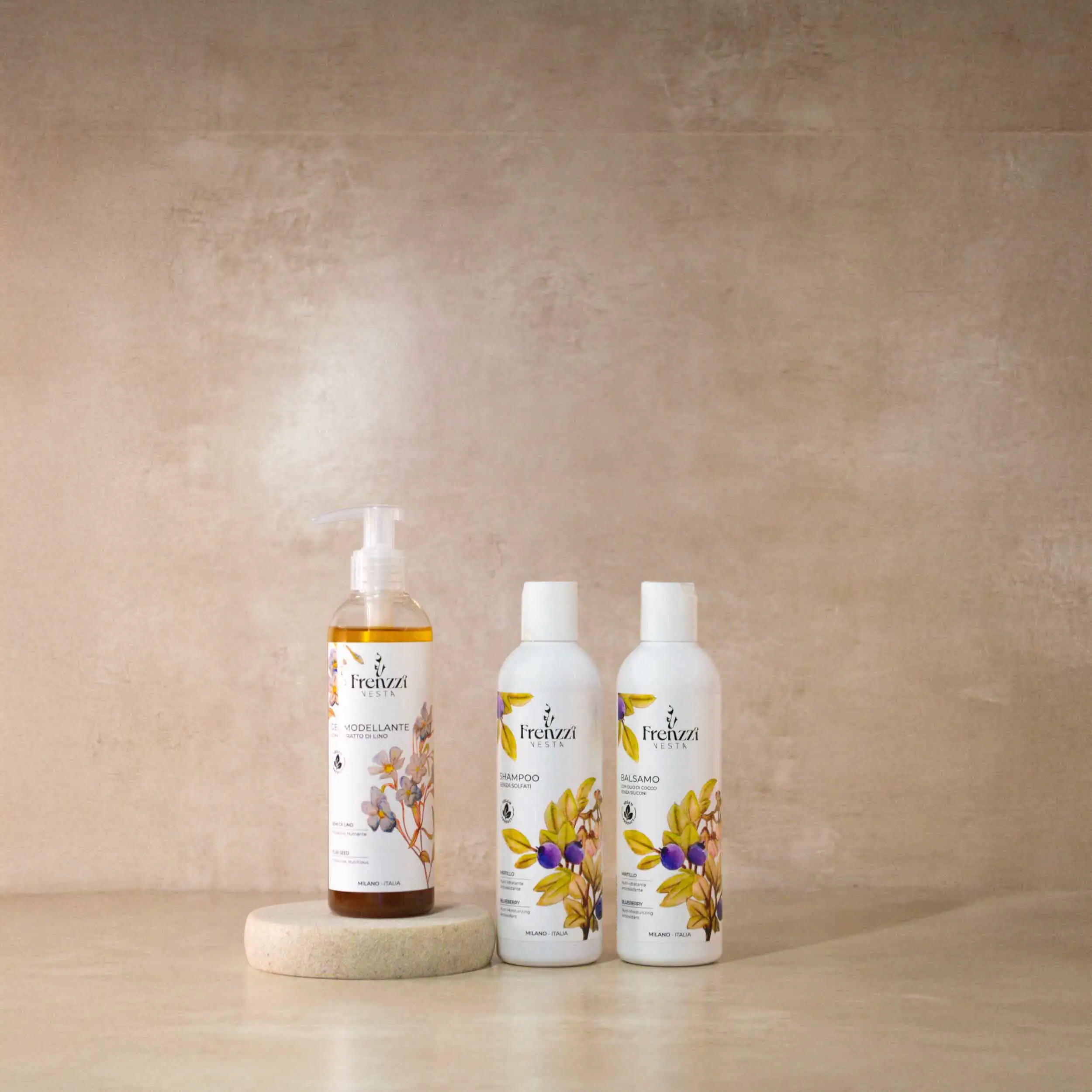 Shampoo ai Mirtilli: Estratto di mirtilli, proteine vegetali.