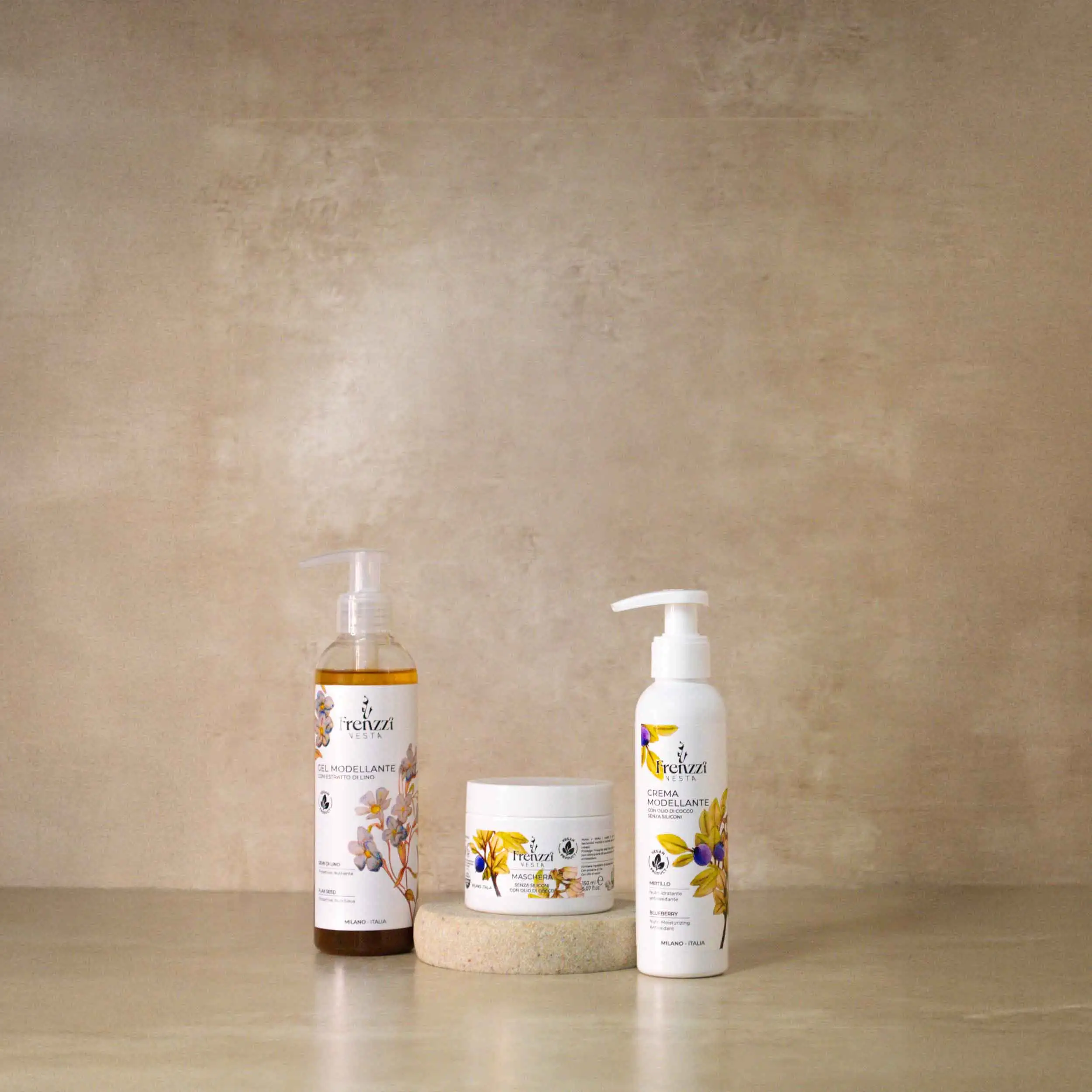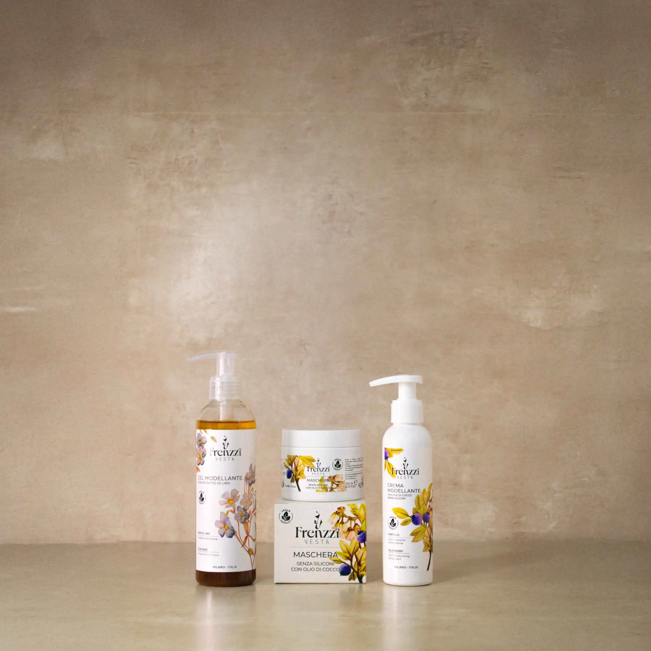 Gel di Lino: Estratto di lino, oli essenziali, estratto di fiori di caprifoglio.